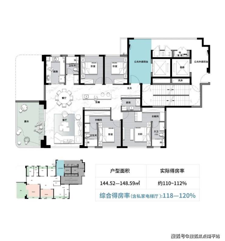 高达约120%综合得房率(含电梯厅)