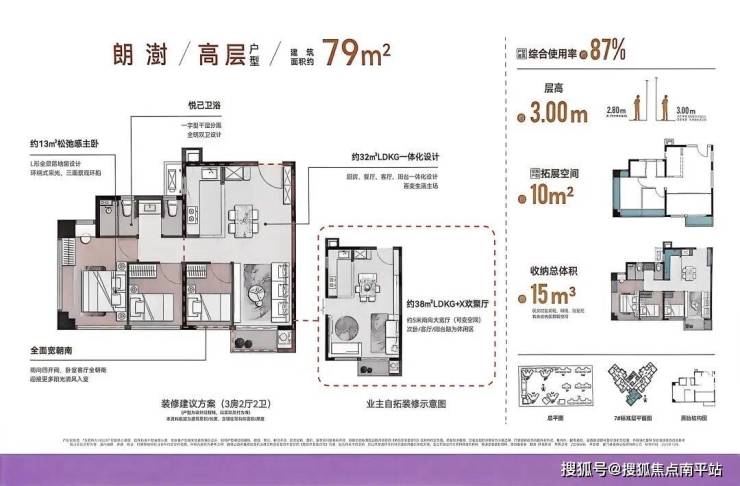 •设计细节:承重墙归边设计,支持空间创变;南向多开间、南北通透,搭配U型厨房、集中式收纳玄关,部分户型带步入式衣帽间与全明电梯厅;