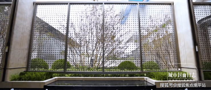 这条时空艺术长廊,是光影交织的林境,21米香槟金格栅长廊以2:1黄金尺度勾勒光影,巧妙框取下沉庭院的雾森景致,乌桕木与蓝翡翠岩水潭倒映天光,让归家成为诗意旅程。