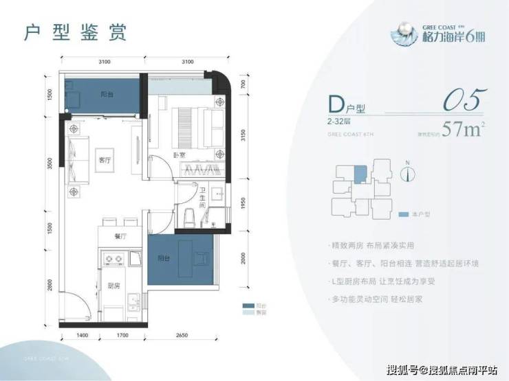 户型:57-114㎡二至三房山海高层