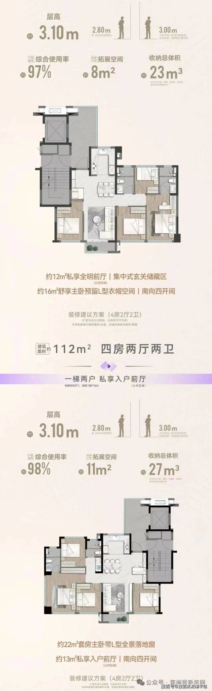 项目规划4栋瞰海高层(部分)2梯5户,64㎡2房、75㎡3房、79㎡3房、89㎡4房,(得房率85%—90%)层高3米;5栋低密洋房,95㎡和112㎡4房,得房率97%—98%)层高3.1米,类独梯独户设计,户户都有一个12-13㎡的入户电梯厅。高层和洋房全系均有外阳台。营销部☎️☎️电话:400-159-8559转接7777【☎营销部电话已认证】