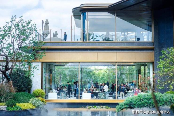 约490㎡的半亩水景搭配超大落地玻璃,窗外叠瀑流水潺潺,乌桕、朴树和红枫点缀其间,营造出“窗外四时分明”的苏州园林框景意境。
