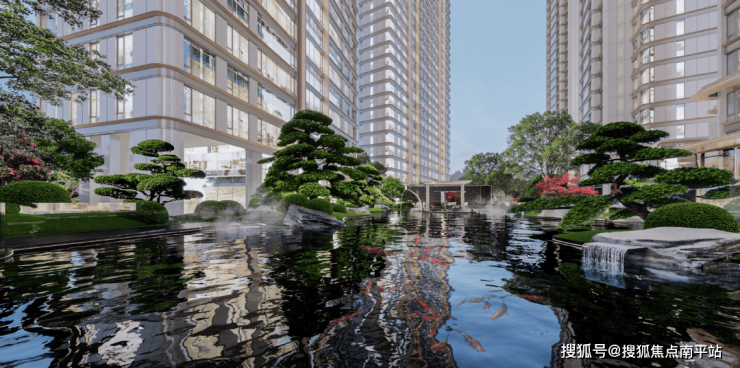 约8.6米高罗汉松、树王级紫薇、约11米高金丝楠木林,约4.5米高金弹子,约1200㎡的进口米级锦鲤池,重构当代玺园