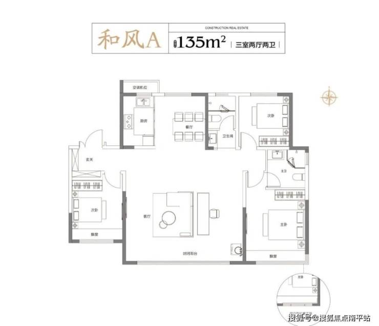 3号楼全是建面约135平的大三室,三叶草的布局让各个卧室空间更安静私密。