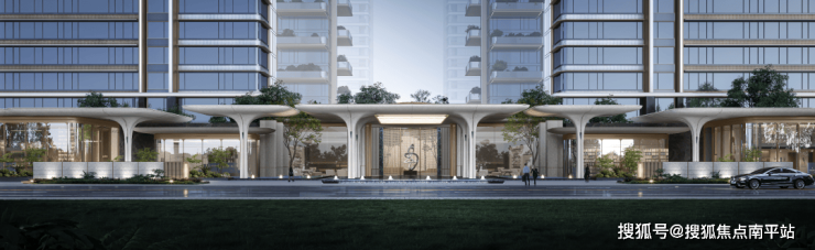 在外立面材质的选择上,采用金属漆、仿石涂料与铝合金线条的组合设计,进一步强化了建筑表面的流畅质感。通过对多层次建筑细节的高规格打磨,整体呈现出兼具现代感、挺拔感、简约感与流动感的独特建筑气质。