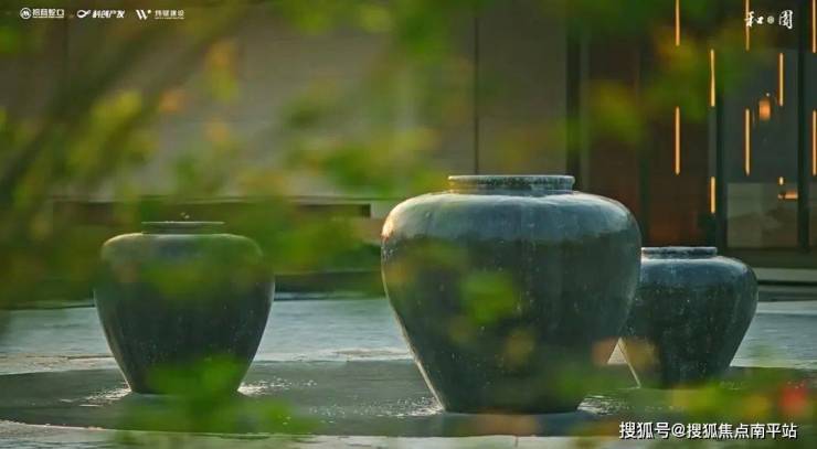 行过归家林径,来到环岛落客区,匠人手工铸造的三尊古法铜缸,平和优雅地立于水面,与拥有独特自然风化纹理的珍稀老石皮相映成趣,勾勒出一幅意境悠远的山水长卷。