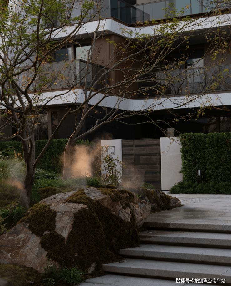 景观呈现「近山、中树、远水」的层次,搭配潺潺流水与光影交织,形成了可居可游的立体山水画卷,「自然式造景」颠覆了传统豪宅的刻意设计,让人体验回归自然的松弛宁静。