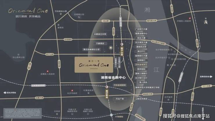 2015年长沙首个国家级新区“湘江新区”成立(信息来源:长沙高新区微信公众号),滨江新城位处湘江新区核芯,定位以现代金融商务为核心。万科滨江一号,位处长沙主城-滨江新城,湖南金融中心南中心附近的臻席住宅地,集萃金融、商业、学校、公园等丰盛资源,目之所及的奢华。