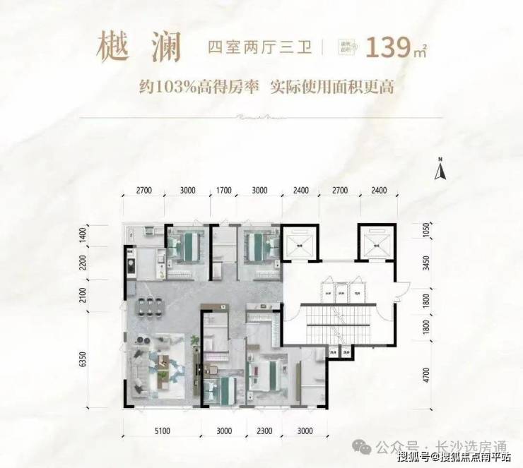 从各户型占比来看,134㎡、139㎡四房户型各超过400户,两种户型占整个小区的比重超过一半,其次是109㎡的三房户型,也有270户,适合刚需家庭。