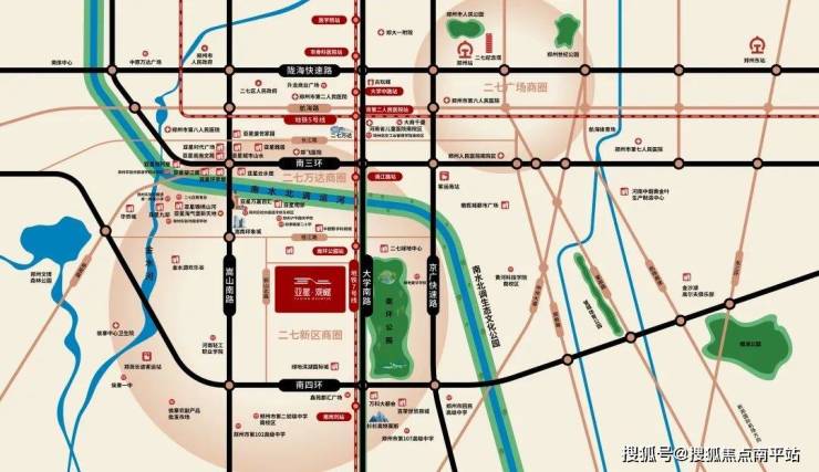5大商圈汇聚|项目直线距离约5公里范围内,约61万㎡二七万达广场、约10万m²嵩南印象城、约16万m²杉杉奥特莱斯、约180万m²百荣世贸商城、约4.5万㎡的亚星万嘉百汇,吃喝玩乐一站尽享。