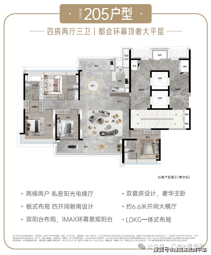建面约205㎡奢适四房---中轴园林上,环幕景观楼王