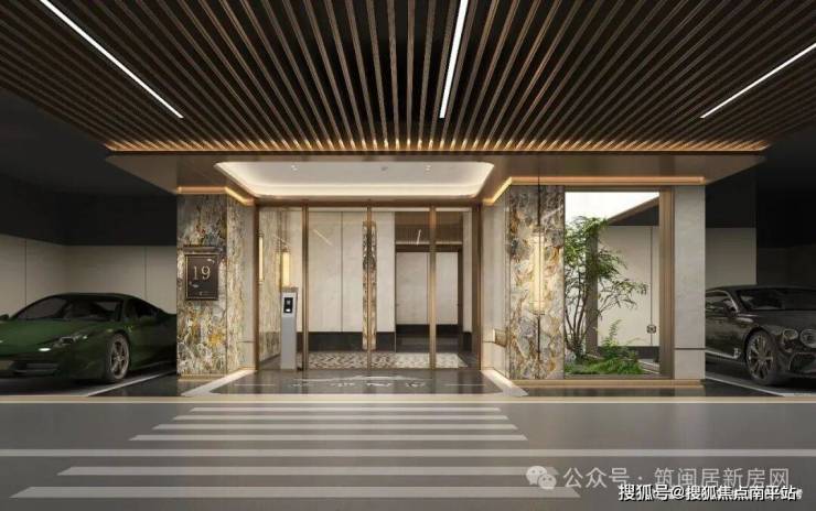 以“劳斯莱斯”徽标为原型灵感描画展翼门庭,约45米宽 ,15米高的恢弘规制,以高星酒店无雨落客区标准打造归家第一重仪式感。为居者铺陈雍容归家的尊贵礼
