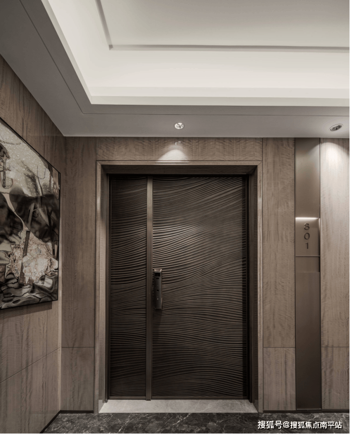 要知道,一般入户门需安装门槛石来过渡。保利则精准的将户内外的高差精准控制在10mm,并在10mm的厚度上安装门槛石材,真正做到了毫米级的极致处理。
