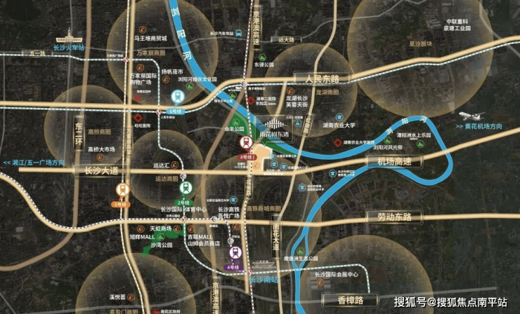 毗邻长沙大道、红旗路、花侯路浏阳河大桥(已开通)等城市主干道,距长沙南直线距离2.9公里,对接京港澳高速、机场高速,拥有7条公交线,业主出行便捷。