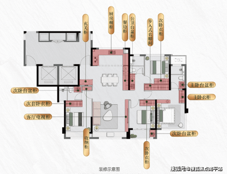 建面约139 ㎡户型收纳系统示意