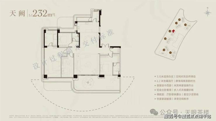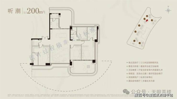 6号楼每层两户,又有奇偶层空中花园区别,所以共4个户型,均为类独梯独户,无际瞰景视野。 温馨提示:奇数层均为双露台。