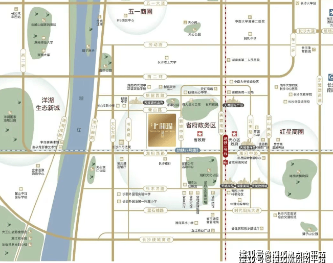 交通配套:南临湘府西路,东近新姚中路,5 分钟内连接湘江中路、芙蓉南路,距离地铁 1 号线省政府清风站约 900 米,规划中的地铁 8 号线新姚路站就在项目门口。