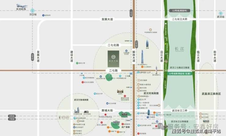项目位于江岸区二七滨江板块,距离二环线直线距离600多米,当之无愧的汉口核心区位。