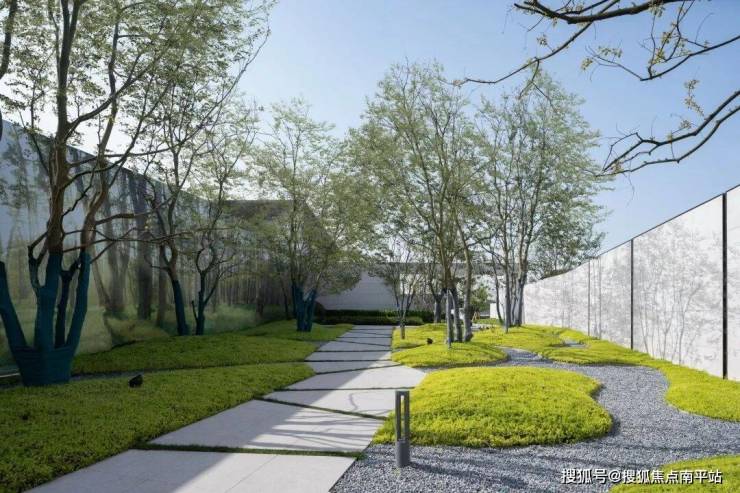 设计风格上,景观设计延续建筑大方简洁、现代素雅的风格,助力打造现代地标性高品质住宅项目,树立生态人文居住典范。