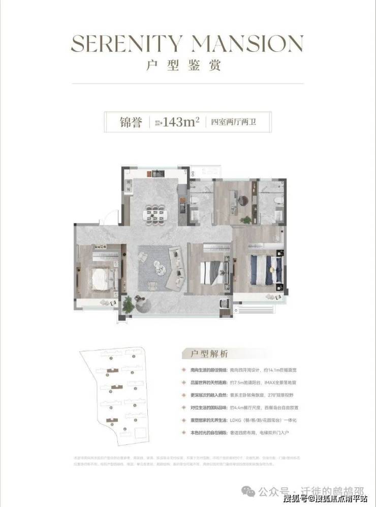 户型亮点:全系采用7米奢阔宽厅、270°转角飘窗(部分户型),主卧标配全景视野,厨房南北通透设计。