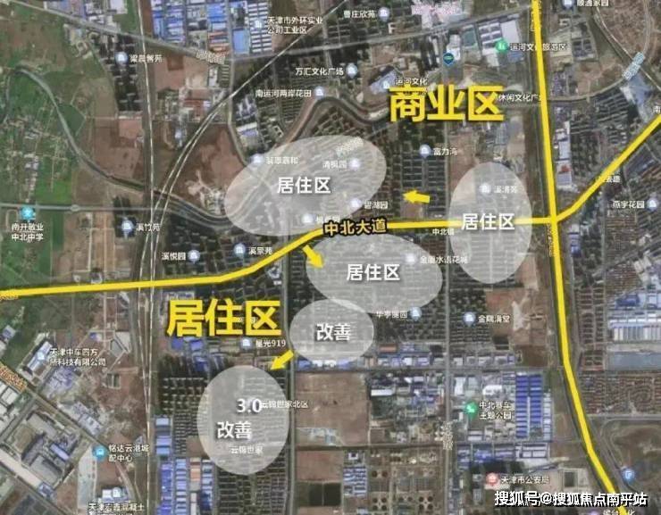 90年代末期,正处于天津大范围的棚改阶段。当时,中北镇还默默无闻,最初的住宅以安置房为主,承接了天津西部大量的“居住改善”。2000年初期,天津正式出现了商品房。中北镇开始沿着中北大道向西推进,建了大量居住区。