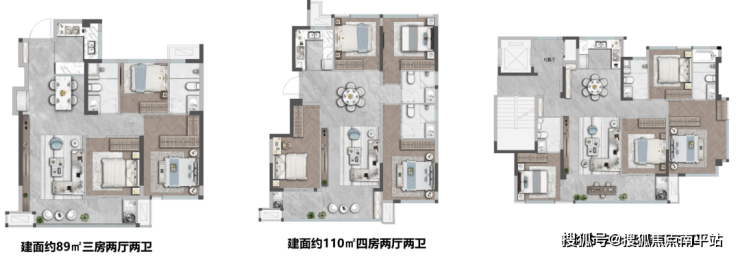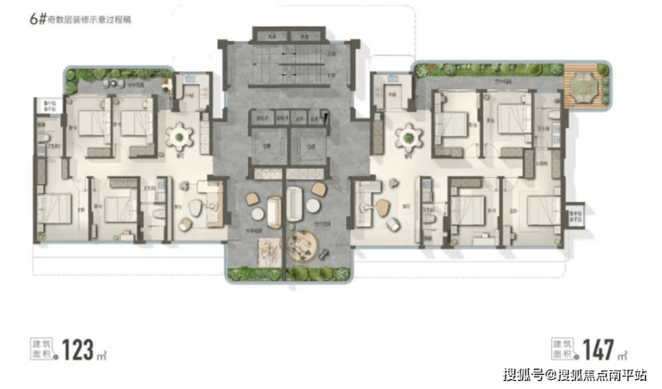 建面约123㎡四房两厅两卫+建面约147㎡四房两厅两卫(奇数层)