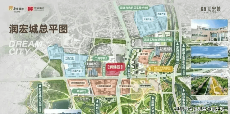 华润润宏城,位于光明区凤凰街道塘尾社区,深圳地铁13号线二期月亮路站(在建)上盖,深圳首个旧改体量建面超300万m²的项目。整体规划容积约380万㎡超大体量城市级,其中住宅约170万㎡,由华润置地和宏发集团联合打造,分多期多地块开发,其中一期就分4个地块开发,前期入市的是润雅园已经基本售罄,还剩少量4房在售,这次润臻园就是1期其中一个地块,后面还有二期三期,另外产业配套也分4期开发打造,还规划有3所九年制学校、2所18班幼儿园,3所12班幼儿园,3所9班幼儿园。