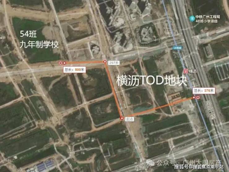 项目距离在建的54班九年制学校,距离就约500米