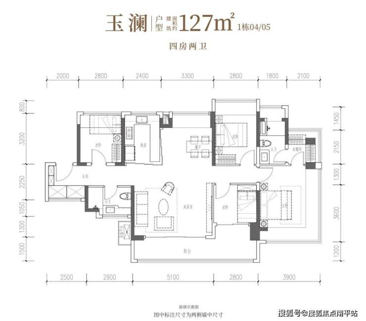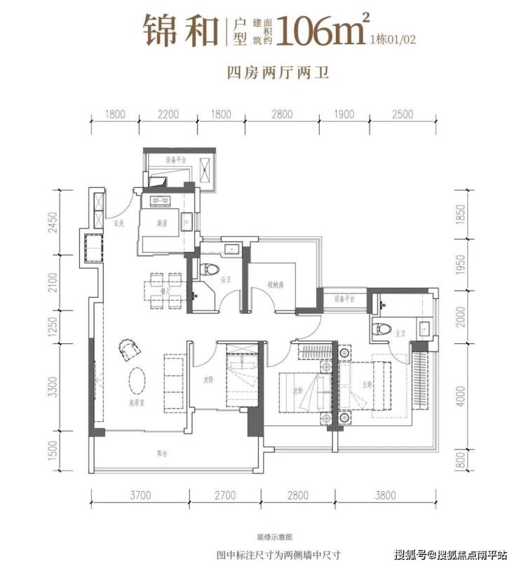 【建筑面积106㎡4房2卫】
