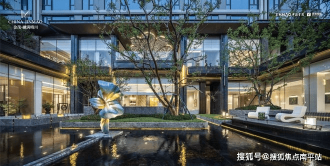 下沉庭院以奥地利艺术家克林姆特的“生命之树”灵感,匠心打造约2000㎡中央水庭与下沉式艺术庭院,营造沉浸式自然画卷。中央的雕塑出自大师之手,以艺术手法再现“汉阳树”的银杏叶片,与畅享庭的汉阳树隔空相望,成为项目的灵魂象征!