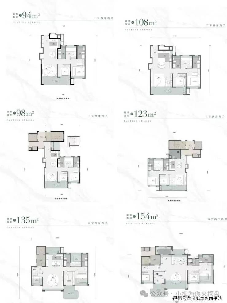 目前项目还户型图已更新出来, 面积段94-99-108-123-137-154的各个面积段都有。户型图如下: