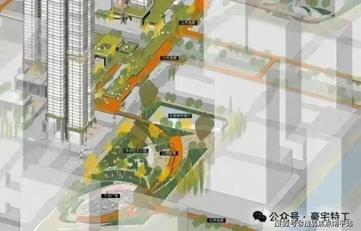 高层住宅的公区设计至关重要。本方案以内部庭院为中心,二层设人行天桥连接休闲区;三层规划户外花园和泳池