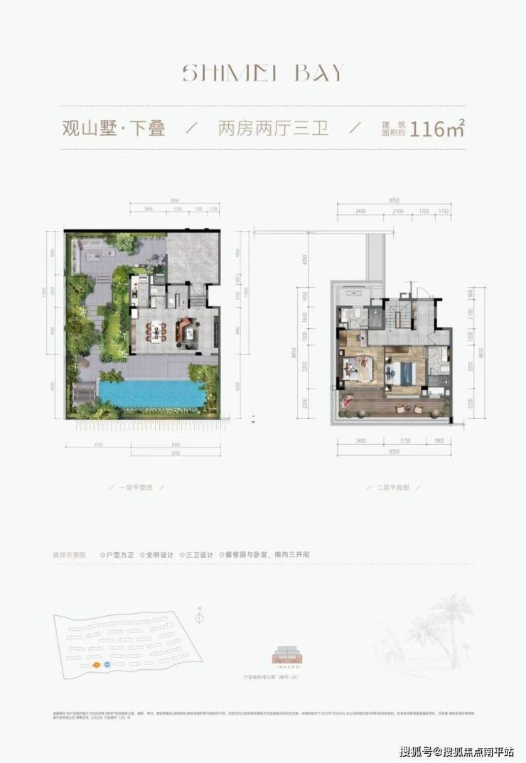 |建筑面积约116㎡○三卫设计,加倍从容,生活自在不拥挤○户型方正,全明设计,将阳光纳入生活○约8.4m大横厅,舒阔尺度,重拾旅居美好○客餐厨花园一体,LDKB专享度假格局○客餐厨与卧室,南向三开间,坐拥理想山海○主卧套房,约8.4m阳台,IMAX级瞰景体验○花园入户,赴自然邀约,开启另一种抵达