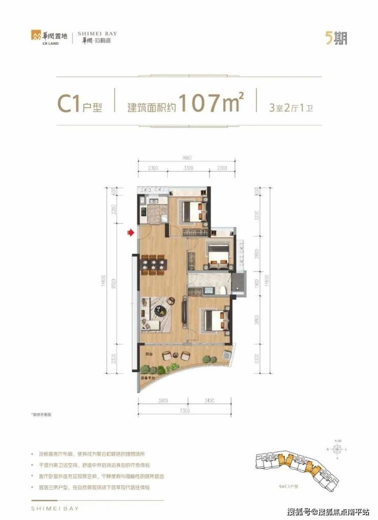 |建筑面积约105㎡○三卫设计,舒适起居,生活自在不拥挤○户型方正,全明设计,纵览山海风景○LDKB专享度假感格局,丰富生活层次○餐客厨与卧室,南向三开间,阳光满室○套房式主卧,约8.4m朗阔阳台,环瞰山海