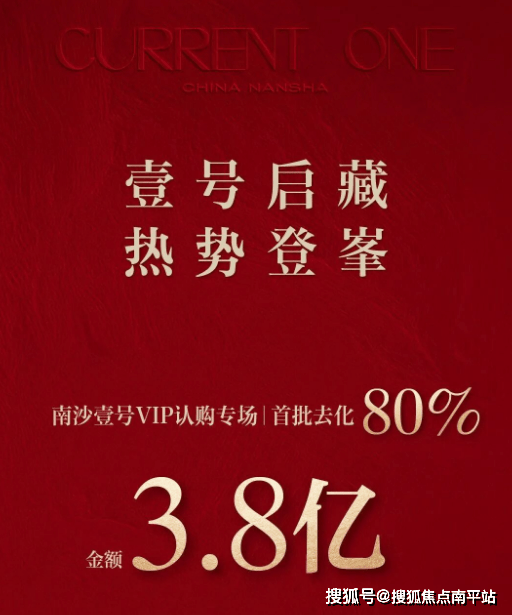 据广州南沙科新置业有限公司消息发布:”南沙壹号VIP认购专场,首批去化80%,金额3.8亿。