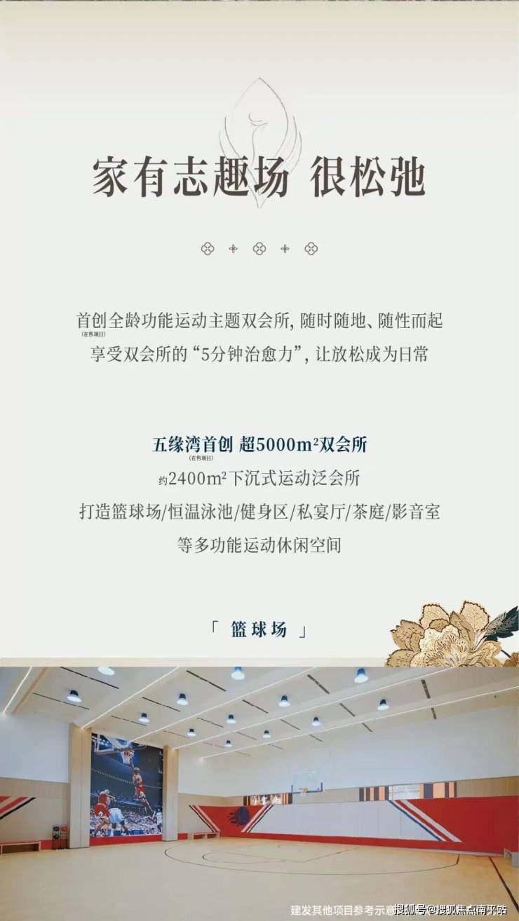 2400㎡地下会所,包含超越五星级酒店的岛内最大私宴厅、标准25m四泳道恒温,可观赏瀑布园林的泳池,五缘湾首个室内国标半场采光篮球场。