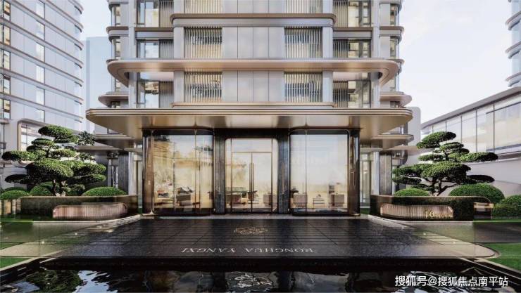 金相玉质,辉映云端冠冕,承袭王府鼎级规制,同频国际当代审美;大面积中空LOW-E玻璃幕墙,辅以金属铝板勾勒,环幕弧面公建化立面,屹立中心的地标封面,献给世界的传承资产