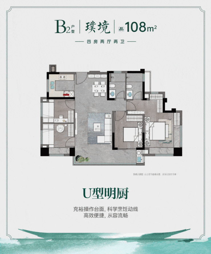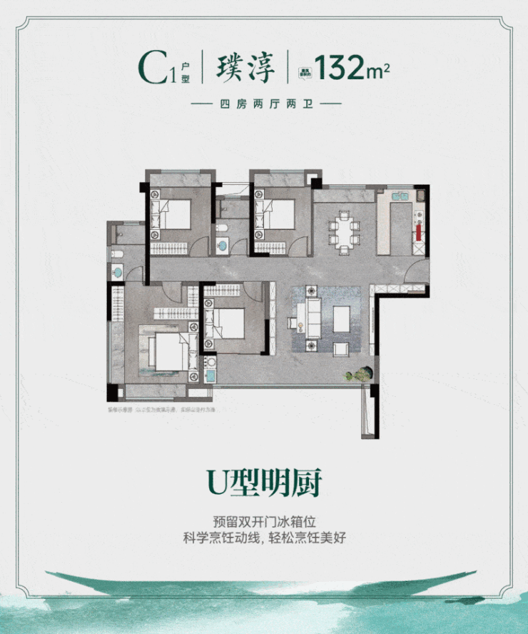 U型明厨,充裕操作台面,高效便捷,从容流畅