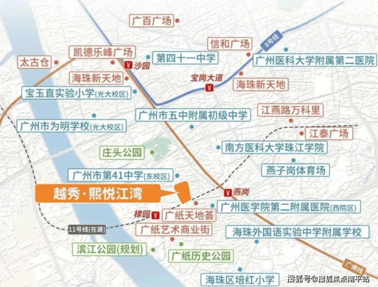 :3 公里内覆盖广州市第 41 中学(省级)、五中附属初级中学(省级)、江南外国语学校等 9 所名校,全龄教育无忧。