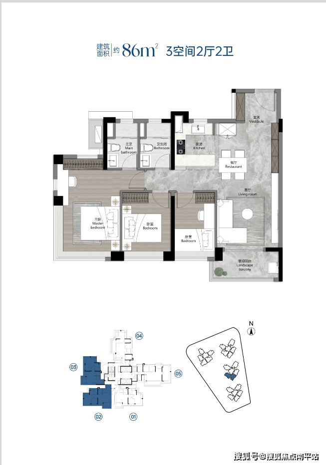 在售户型:建面约86-110-122㎡全南向三至四房