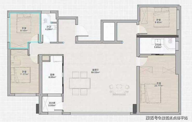133㎡大平层 , 四叶草+横厅设计 在广州独一无二,客厅甚至不需要打通,就能实现 约7.4米大宽厅 ,媲美170㎡大平层。