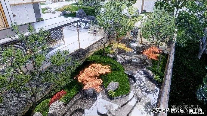 下沉式山水庭院,特选黑山石、特选红枫、乌桕珍木,以山石流水造咫尺山林,锦鲤池与假山、草木相映成趣,打造济南罕有的立体庭院。