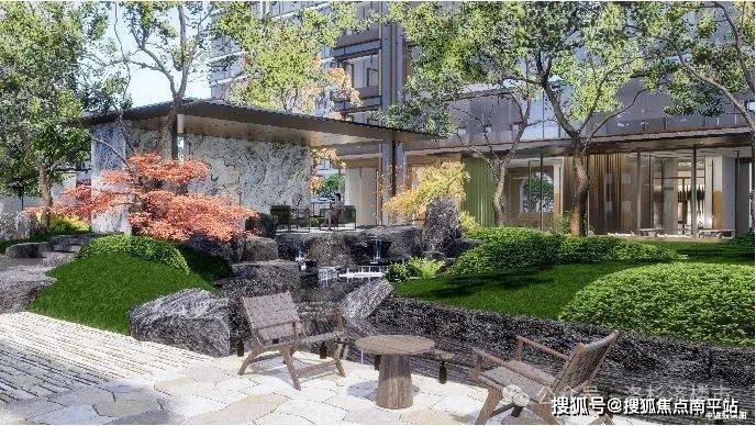 项目不仅在小区内有高定山水园境,小区外也打造了约4000㎡的公共景观绿化。取法 "汇波晚照"光影美学,精选黑松造景和天然石皮墙,构筑 "松石相映,静听自然" 的禅意空间。让小区实现内外双园,真正做到“住在景区里”。