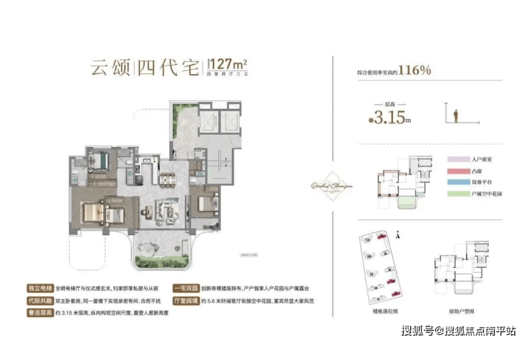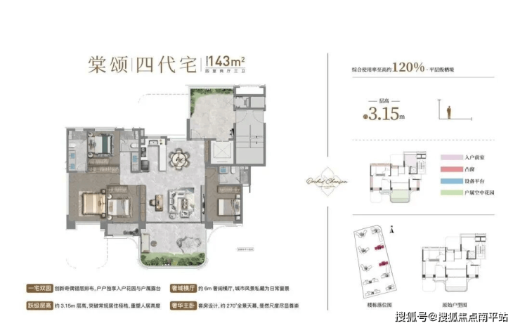 1、综合使用率118%-120%,相当于200㎡独梯独户大平层;