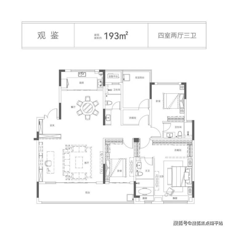 建面约193㎡四房户型,打造大尺度的宽厅设计,长沙几乎少见,搭配超大的景观阳台,采光通风俱佳。