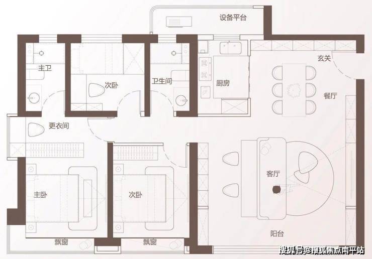 主卧配270°转角飘窗+衣帽间+独立卫浴,尊享感拉满!