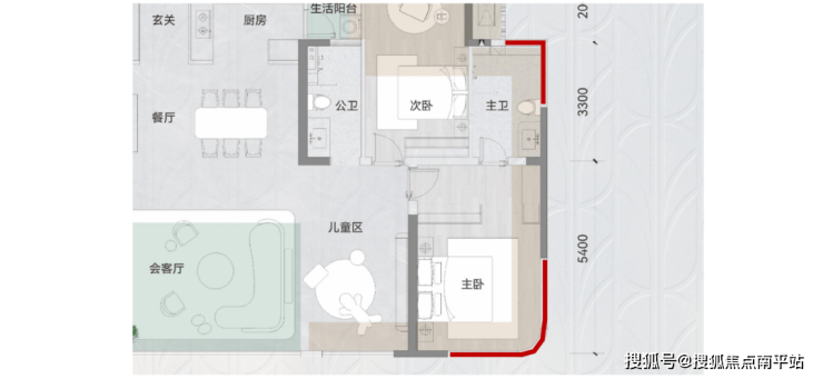 (4)主卫也是转角窗户,但是主卫尺度放不下浴缸