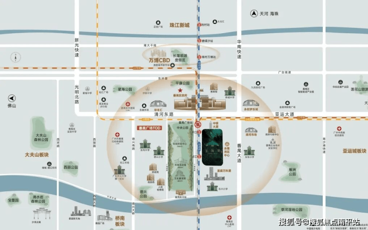 ◎ 尊踞区府正脉,直线距离番禺区政府约200米,坐享广州中轴上仅有的“区府+TOD+中央公园”三引擎合璧的超级中芯。税务局、检察院、财政局、教育局等行政机构环立,凝聚一城高端圈层