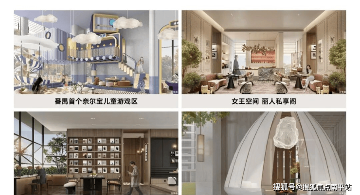◎规划打造四大主题架空层空间,涵盖儿童趣玩、邻里社交、休闲书吧、女王私享等全龄多彩锦盒