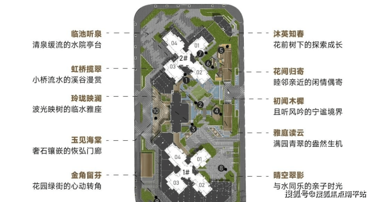 ◎采撷岭南园林“藏而不露,缩龙成寸"的造园精髓,以“造园六式”,打造瑰丽“海棠十景”,带来都市谧境的履景游园